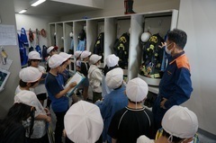 10月7日(火)に、上越消防署に見学に行き、お話を伺ったり、施設の中や車両を見せていただいたりしました。消防車の大きさや防火服の重さなどに圧倒されながら、教えていただいたことを一生懸命にメモしていました。